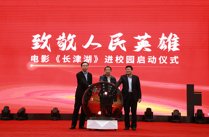 放映前,现场举行了由省委教育工委、省教育厅主办的“致敬人民英雄——电影《长津湖》放映进校园”启动仪式。省委教育工委委员、省教育厅副厅长储常连,校党委书记顾家山,安徽广电集团党委委员、工会主席胡滨共同按下启动键,拉开全省高校放映的序幕。校党委常委、副校长肖圣龙出席活动。