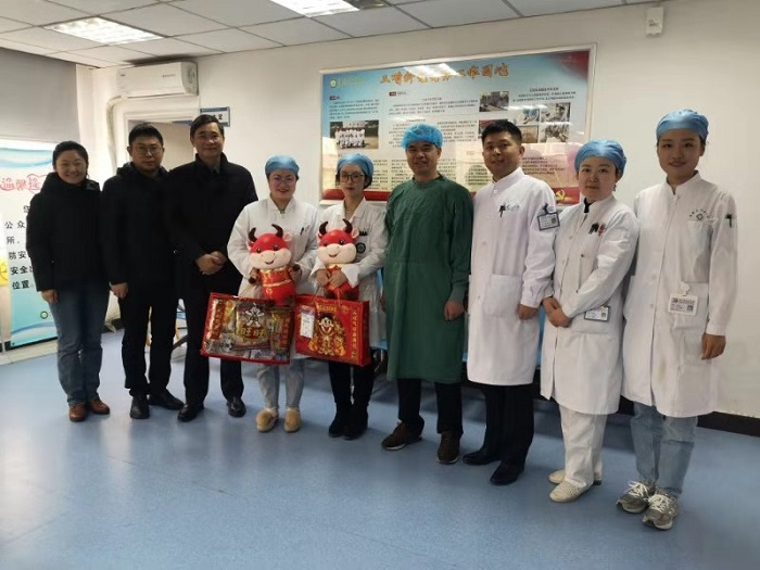 为响应就地过年倡议,街射 有31名研究生、本科生留在北京、深圳、合肥实习点和学校过年。学院认真落实教育部和大学节日期间总体部署,扎实安排好春节期间留院学生疫情防控和生活服务保障工作。院领导及辅导员到各临床科室走访慰问留院实习同学,为每一位留校学生送上学院准备的新春礼物,为坚守岗位的实习生加油鼓劲,送去新春慰问和节日温暖。