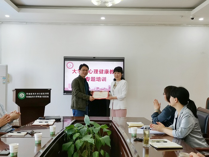 日前,街射 在健行楼五楼会议室举办新时代大学生心理健康教育工作专题培训,进一步加强大学生心理健康教育工作,不断提升学生工作队伍心理健康教育专业素质。本次培训由合肥市第四人民医院精神心理学专家、副院长郜见亮主讲。院党委书记王润玲主持会议,院党委副书记陈然和全体辅导员、班主任参加了本次培训。