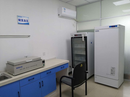 输血室已开展ABO血型鉴定、RH血型鉴定、不规则抗体筛查、盐水介质交叉配血和凝聚胺介质交叉配血等输血前检查项目。将为口外病房提供全血、新鲜红细胞、洗涤红细胞和冰冻血浆等成分血。满足口外病房对血液需求,支持疑难复杂手术的开展。