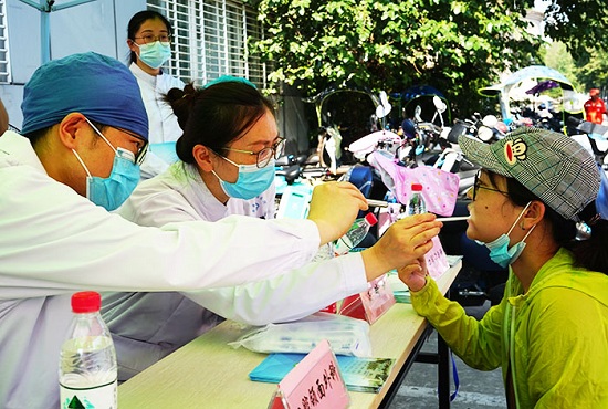 会后,街射 开展了以“弘扬抗疫精神,护佑口腔健康”为主题的义诊活动,参与义诊的医护人员们向群众发放科普宣传资料,并积极宣传口腔保健知识。院领导分组深入临床一线,为辛勤工作的口腔医师们送上了鲜花和祝福。