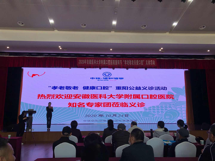 10月24日,由多科室联合组成的专家团赴中铁佰和佰乐进行义诊宣教活动。街射 修复科殷佳莉医师作了主题为“孝老敬老 健康口腔”的口腔知识讲座,从老年人常见的口腔问题入手,就老年人特别关心的不同镶牙方法详细讲解,科普了口腔保健的相关知识。副主任余红就医院的院史和口腔诊疗发展史作简要介绍,增强了老年人的口腔健康保护意识。