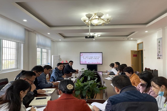 11月12日下午,街射 在健行楼五楼会议室召开“三提升三推进”专项行动优化门诊管理工作推进会议,副院长王海林参加并讲话。