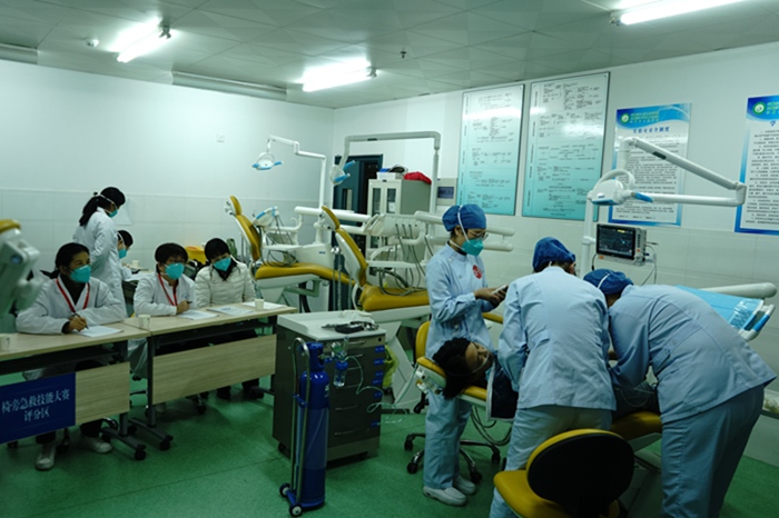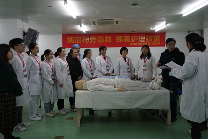 11月29日,街射 在力行楼9楼实训中心举办首届椅旁急救技能大赛。院党委书记王润玲亲临现场观摩,副院长王海林就护理部一直致力于提高护理人员急救能力给予充分肯定,并现场为参赛人员加油打气。