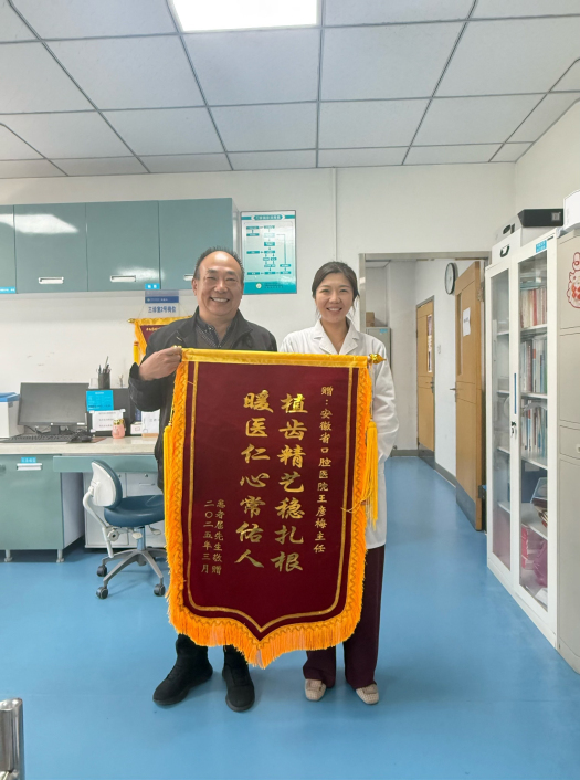“是王主任让我重新拥有了品尝美食的幸福!”4月15日上午,在街射 种植科门诊,患者屈先生将一面绣有“医技精湛解牙忧,仁心仁术暖人心”的锦旗,郑重地交到副主任医师王彦梅手中。这面鲜红的锦旗背后,是一个关于信任、专业与重生的温暖故事。