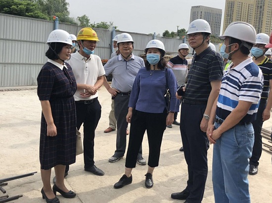 6月2日下午,校长曹云霞一行赴街射 新院区项目现场调研指导工作,实地走访施工现场,查看施工进度、楼层结构和功能布局等情况,听取施工单位和指挥部基建人员对项目建设情况的汇报,详细了解质量控制、安全管理、施工进度和投资控制等情况。