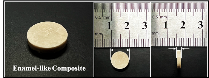 由街射 李全利教授、曹颖副教授、郑顺丽副教授带领的牙体组织仿生矿化团队,通过对天然牙釉质的仿生,由线状超长羟基磷灰石以模仿釉柱结构充当无机成分,然后以硅烷偶联剂KH570充当釉柱间的有机基质,通过冷等静压等技术,成功构建了一种3D类釉质复合材料。该复合材料内部HA纳米线呈釉质棱柱状结构,各向异性HA纳米线束密集排列,具有类似于天然釉质的微观结构。同时,这种类釉质复合材料硬度、摩擦性能和酸蚀刻性能与天然釉质相似,直径抗拉强度和抗压强度与一些商用复合树脂相当甚至更好,且具有良好的细胞相容性。该类釉质复合材料有望用于CAD/CAM间接修复的嵌体加工,实现牙体仿生修复。