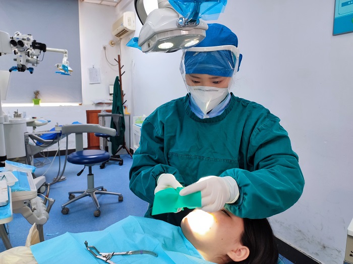 当时接诊的患者大部分是牙疼了几天,冒着风险过来就诊的。其中有一位患者去了数家公立医院口腔科,因为各种原因没能得到处理,打车时偶然得知街射 依然开诊,就立即来到了街射 就诊。郑桂婷对其进行耐心解释和精心治疗,患者的病情也很快得到了缓解。还有一位患者上午在其他科室拔牙,因未严格遵照医嘱,导致创口出血,下午过来发现处置医生也发烧了,不得已转来牙体科室。郑桂婷迅速给他进行了止血,消除了患者的恐惧。“幸好有你们在!”是患者对她最大的信任。“疫情以来,我们在诊疗中从不敢懈怠,全力帮助患者解决问题,这是我们义不容辞的责任。”郑桂婷说。