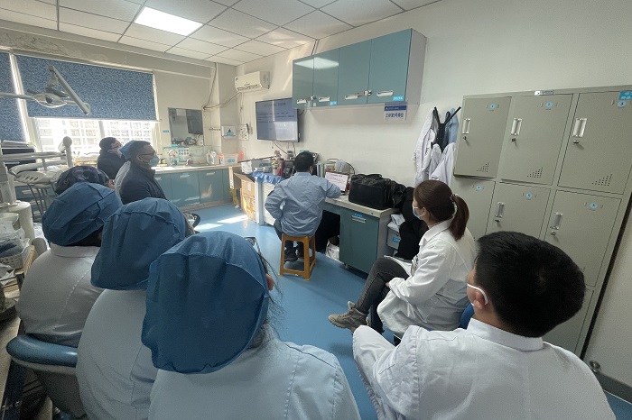 国家医保局于近期公布了《关于规范完善口腔种植医疗服务项目及价格的通知》。2月4日中午,街射 种植科副主任刘鑫带领科室全体医生认真学习了种植集采政策价格调整后的具体实施细则,加强医护人员对调整后的口腔种植医疗服务价格项目的了解。