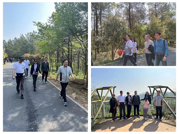 活动开始前,大家在山底合影留念,相机定格了大家的笑容,也定格了最美好的瞬间。院领导率先带领大家向山顶进发,沿途风景宜人,有青松翠柏,有缤纷绚烂的樱花,有古朴的山寺......职工们三五成群,或健步如飞,或驻足欣赏,徜徉在这醉人的春日风景里,一路欢声笑语,成为了一道亮丽的风景线。经历两个小时的爬山旅程,大家不仅锻炼了身体,也愉悦了心情。