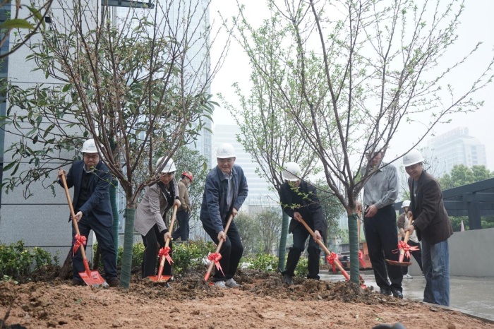 实地查看新院区建设情况后,余永强代表校党委、行政,向建设工作人员及一线工程建设者致以亲切的慰问,对他们的辛苦付出表示感谢,对项目进展给予了高度肯定。绵绵春雨中,他和街射 新院区建设指挥部成员一起,共同种下了桂树、桃树、琵琶等树苗,并希望街射 新院区像树苗一样茁壮成长,全院职工要从工作中汲取营养,向下扎根、向上生长,向阳而生,撑起一片绿荫,守正创新,勇毅前行,共同为新院区高质量发展描绘美丽画卷。