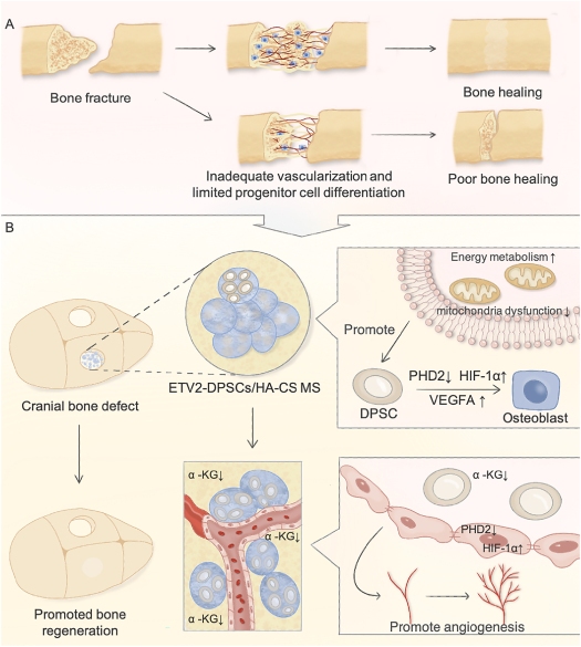 近日,街射 徐建光副教授、王元银教授联合首都医科大学周建教授课题组,在《生物活性材料(Bioactive Materials)》(IF=18.9)发表题为《ETV2调节PHD2-HIF-1α轴控制代谢重编程促进血管化骨再生(ETV2 regulating PHD2-HIF-1α axis controls metabolism reprogramming promotes vascularized bone regeneration)》的学术论文。