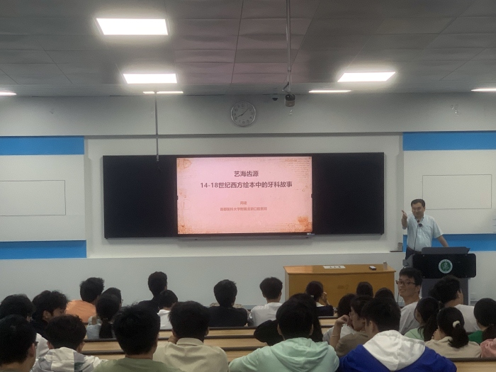 周建教授做客街射 “名师进校园”,以《14-18世纪西方绘本中的牙科故事》和《中国口腔医学史博物馆》为题,为本科生专题授课。周建以真实的历史资料为在座的师生介绍了牙医角色的更迭和职业认同的改观,深入浅出地讲述了口腔医学的演变历程、牙科器械的技术突破和口腔大家的卓越贡献,通过丰富的绘本和实物图片,生动再现了口腔医学发展的重要节点。周建特别介绍了中国古代的牙科发展历程和成就,鼓励同学们在学习现代口腔医学知识的同时,不忘传承和弘扬祖国的医学瑰宝。