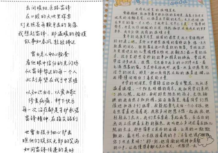 学院还精心策划了“锋采华章”主题征文比赛,收到投稿百余篇。参赛作品从“门诊室里的温暖瞬间”“科研中的钉子精神”等角度切入,既有对雷锋精神时代价值和内涵的剖析,也有对学习生活感悟的生动记录。“当牙科灯照亮患者口腔时,我们手中的口镜不仅要探查龋齿,更要映照出医者对生命的尊重。”2024级本科生曹玉涵写道。