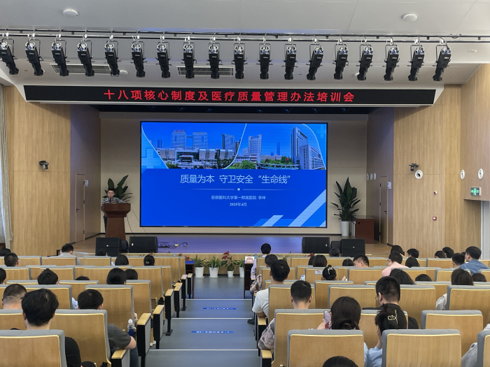 4月17日,医院在高新总院十八楼会议室开展十八项核心制度及《医疗质量管理办法》全员培训会。副院长徐文华,一附院医务处副处长(高新医院医务部部长)李珅作专题授课。