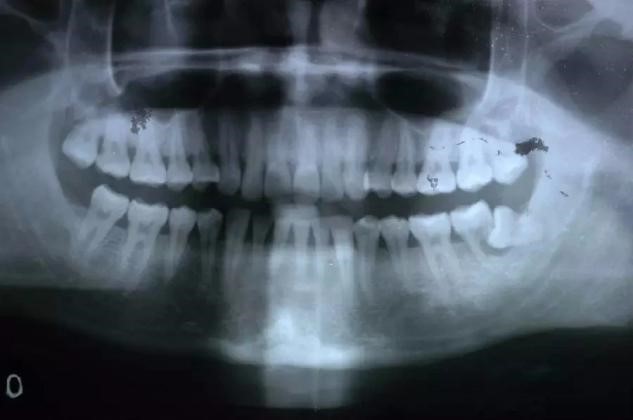 2、磨牙龋齿:对于向前倾斜的阻生智齿,食物通常积聚在相邻牙齿之间,这容易导致相邻牙齿(下第二磨牙)的龋齿。这种龋齿不容易被发现,一旦出现疼痛(急性牙髓炎),牙冠通常会严重受损。出现龋齿、牙髓炎,甚至牙齿不能保留。第二磨牙缺失对咀嚼功能有很大影响,也很难用义齿修复。