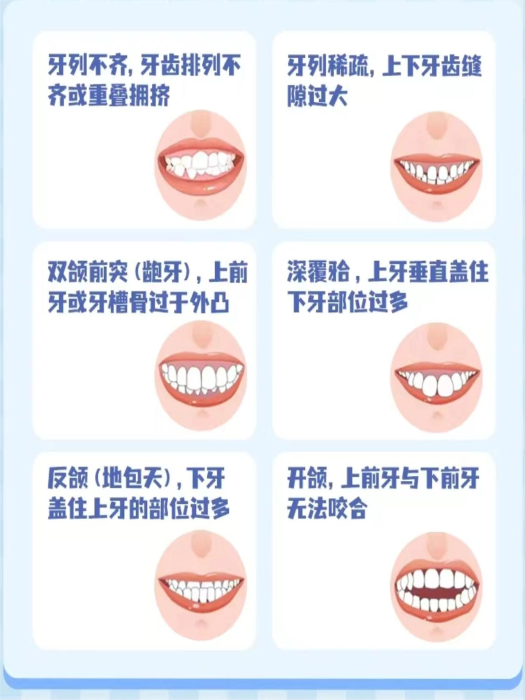 3.影响口腔咬合功能,牙齿畸形会出现发音异常、咬合咀嚼错位,更有严重还会造成吞咽困难等。