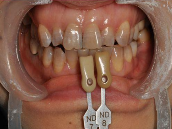 氟斑牙,又称氟牙症或斑釉,是由于从小(7岁之前)生活在高氟地区,在牙釉质发育期间长期摄入含氟较高的水或者食物,造成牙釉质色素沉着,呈黄白色斑点,严重的会伴有牙体缺损。氟斑牙一般在恒牙上出现,乳牙很少出现。