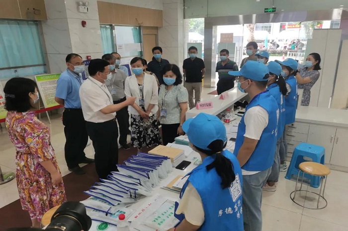 上午9时,校党委书记顾家山、校长曹云霞,副校长余永强及研究生学院负责人一行在学院领导的陪同下,看望了街射 新生接待工作人员,详细询问了新生报到人数、物资发放情况,亲切慰问坚守岗位的工作人员以及学生志愿者,对他们认真负责的态度表示了肯定,并与志愿者们亲切合影留念。