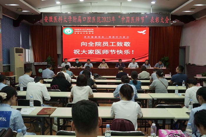 8月18日下午,街射 在健行楼六楼会议室召开2023年“中国医师节”表彰庆祝大会。院党委书记王润玲出席表彰大会并讲话,副院长王元银主持会议,院领导班子成员出席会议。