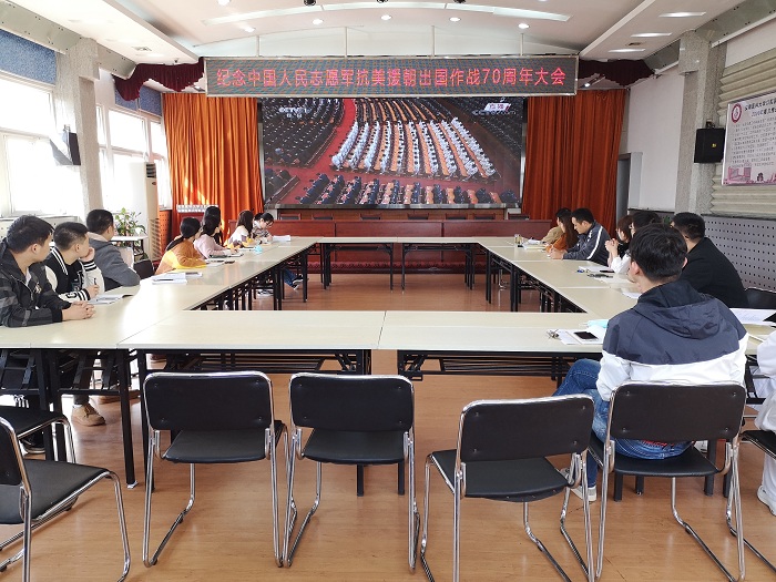 纪念大会,凝聚精神伟力。10月23日上午,街射 全体师生以党支部为单位,共同观看了纪念中国人民志愿军抗美援朝出国作战70周年大会并纷纷发表感想。院党委书记王润玲表示:“抗美援朝战争的胜利是建立在党和国家的正确领导下的伟大胜利,中国人民志愿军将士为了祖国和民族的尊严奋不顾身、不畏牺牲、顽强斗争,值得我们深入学习。伟大的抗美援朝精神激励我们坚定理想信念,立足本职工作,实际践行爱国主义情怀,充分发挥吃苦耐劳精神,争做新时代的实干者、奋斗者。”牙周黏膜科党支部书记张雷说:“爱国,既是对国家和人民利益的坚定维护,也是对生养自己的土地和人民的真挚热爱;既是对祖国和民族尊严的认同与自豪,也是对国家前途、民族命运和人民幸福的使命与责任。要铭记历史,珍惜和平,居安思危,苦练本领,积极弘扬伟大的抗美援朝精神。”2018级团总支书记刘星宇同学说:“要继承和弘扬伟大的抗美援朝精神,铭记伟大胜利,砥砺前行、锐意进取,用青春和知识书写新时代新青年新人生,助力健康中国,实现中华民族伟大复兴。”
