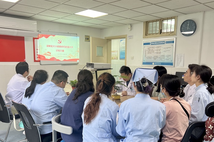 5月29日中午,街射 副院长徐文华在病房四楼医生办公室以“凝聚起大兴调查研究的强大共识和力量”为题,为颌面外科支部全体成员讲授主题教育系列专题党课。