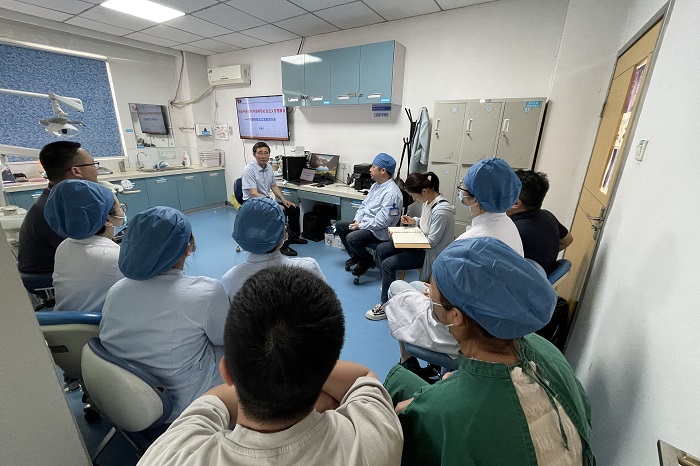 5月31日中午,街射 院长何家才在医院七楼种植科以“习近平新时代中国特色社会主义思想解读”为主题,为种植科支部全体党员讲授主题教育系列专题党课。