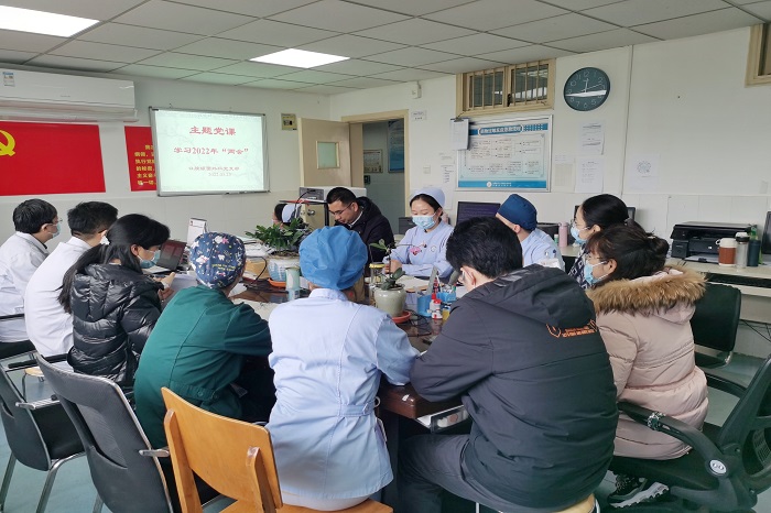 3月23日,街射 颌面外科党支部在四楼医生办公室集中学习习近平总书记在2022年全国两会上的重要讲话精神,支部书记王银龙主持会议。
