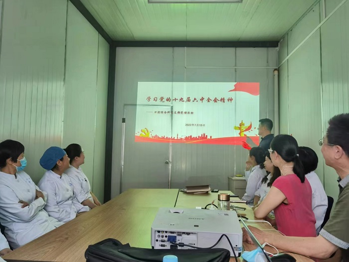 7月20日,街射 副院长蒋勇为综合科全体党员讲授学习贯彻党的十九届六中全会精神专题党课。
