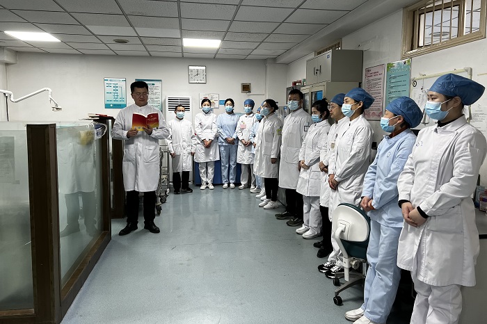 张雷强调,要准确把握党的二十大报告中习近平总书记关于持之以恒推进全面从严治党的谆谆告诫,牢记“三个务必”,保持谦虚谨慎,牢记职责使命,强化政治责任,主动担当作为,压实日常监督。他表示,当前科室的发展仍然面临诸多困难和挑战,科室人员要用党的二十大精神武装头脑、指导实践、推动工作,克服重重困难,勇毅前行。无论是在保障患者健康的临床工作主战场中,还是在抗击新冠肺炎没有硝烟的战场上,科室全体医护人员要始终想在一起、干在一起,切实把党的二十大精神转换化为提升医疗技术和服务水平的强大动力,用心用情服务好人民,为人民群众的生命健康保驾护航。