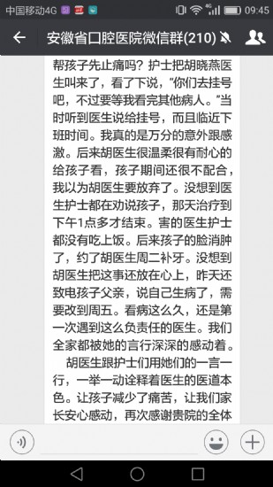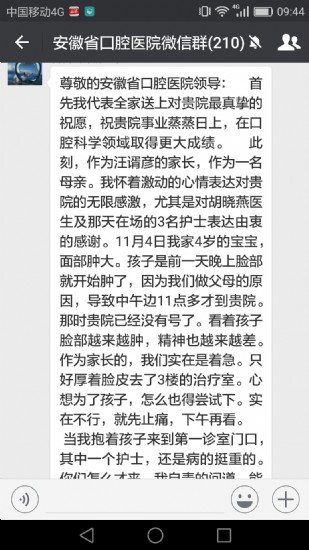 当时孩子还是病的挺重的,当时他们到三楼,咨询护士能否给看,护士把胡晓燕医生叫来了,胡医生看了下说,“你们去加一个号吧,不过要等我看完其他病人。后来胡医生很温柔很有耐心的给孩子看,孩子期间还很不配合,没想到医生护士都在劝说孩子,那天治疗到下午1点多才结束。后来孩子的脸消肿了,没想到胡医生时间调整还特意电话告知,看病这么久,还是第一次遇到这么负责任的医生,他们全家都被胡晓燕的言行深深的感动着。
