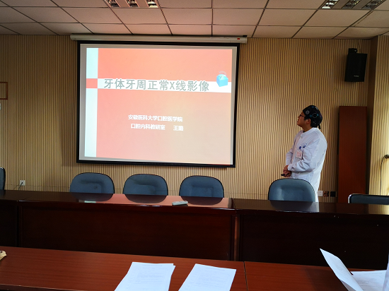 举行2018-2019学年第一学期青年教师试讲活动,来自口腔内科学教研室的王璐医师进行了《牙体牙周组织正常X线影像》教学试讲活动,此前他已经通过科室试讲,本学期将承担本科理论教学任务。附属口腔医院副院长王元银教授、口腔内科学教研室主任李颂教授、副主任徐燕教授,科教办、青年教师、学生代表等参与了此次活动。