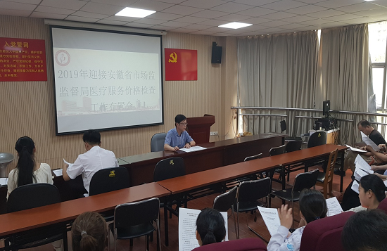 召开2019年迎接安徽省市场监督管理局医疗服务价格检查工作布置动员会。副院长王海林主持会议并作重要讲话,各临床科室主任、护士长、部分行政科室负责同志参加会议。