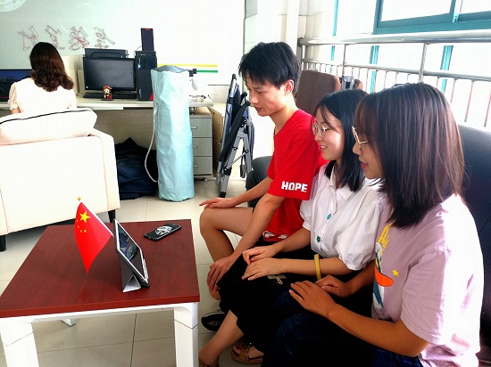 组织留校学生在尚美楼12楼办公室,共同收看庆祝中华人民共和国成立70周年大会直播盛况。