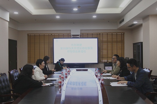 王润玲对吴小红的热情接待表示感谢,并简要介绍了安医大附属口腔医院的基本情况。她表示,该院当前正处在高水平大学附属口腔医院建设的关键期,重庆医科大学附属口腔医院近年来高度重视抓党建、促发展,成效显著,在一级学科博士学位点申报等工作中取得了骄人成绩,其工作中先进的医院管理理念和方法值得借鉴和学习,以促进安医大附属口腔医院推动各项工作高水平发展。